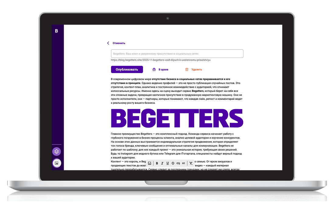 Простой, но функциональный редактор статей позволит глубже раскрыть себя и свой продукт, рассказать историю, создать лояльную аудиторию