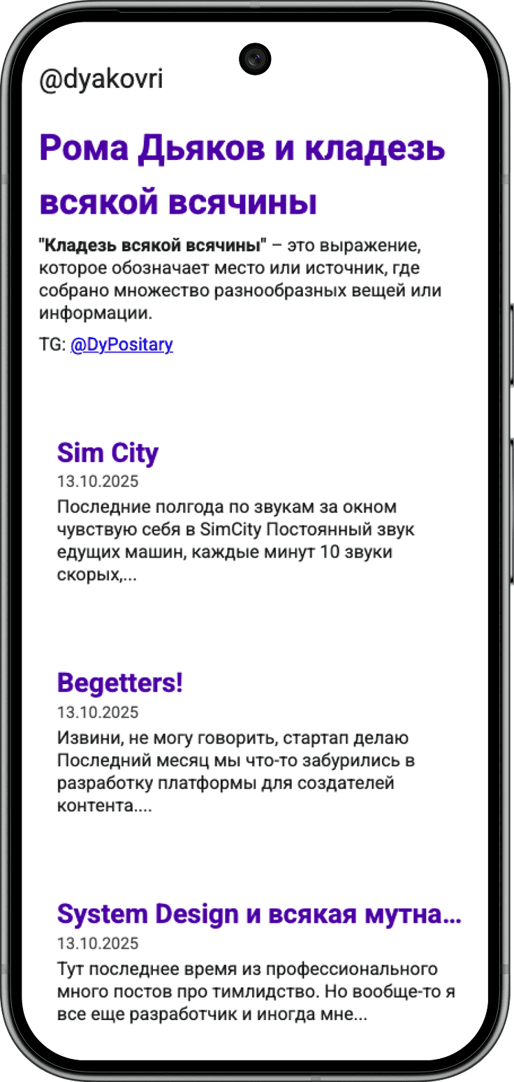 "Мой блог Кладезь всякой всячины переехал из Telegram в Begetters. Теперь я пишу на Begetters, который ведет сразу все мои социальные сети!"